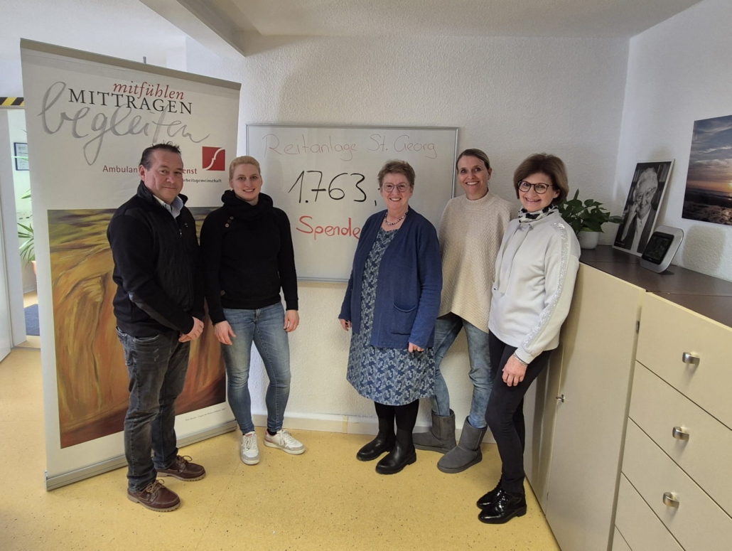Der Ambulante Hospizdienst freut sich über eine bedeutende Spende in Höhe von 1.763,- Euro von der Reitanlage St. Georg.